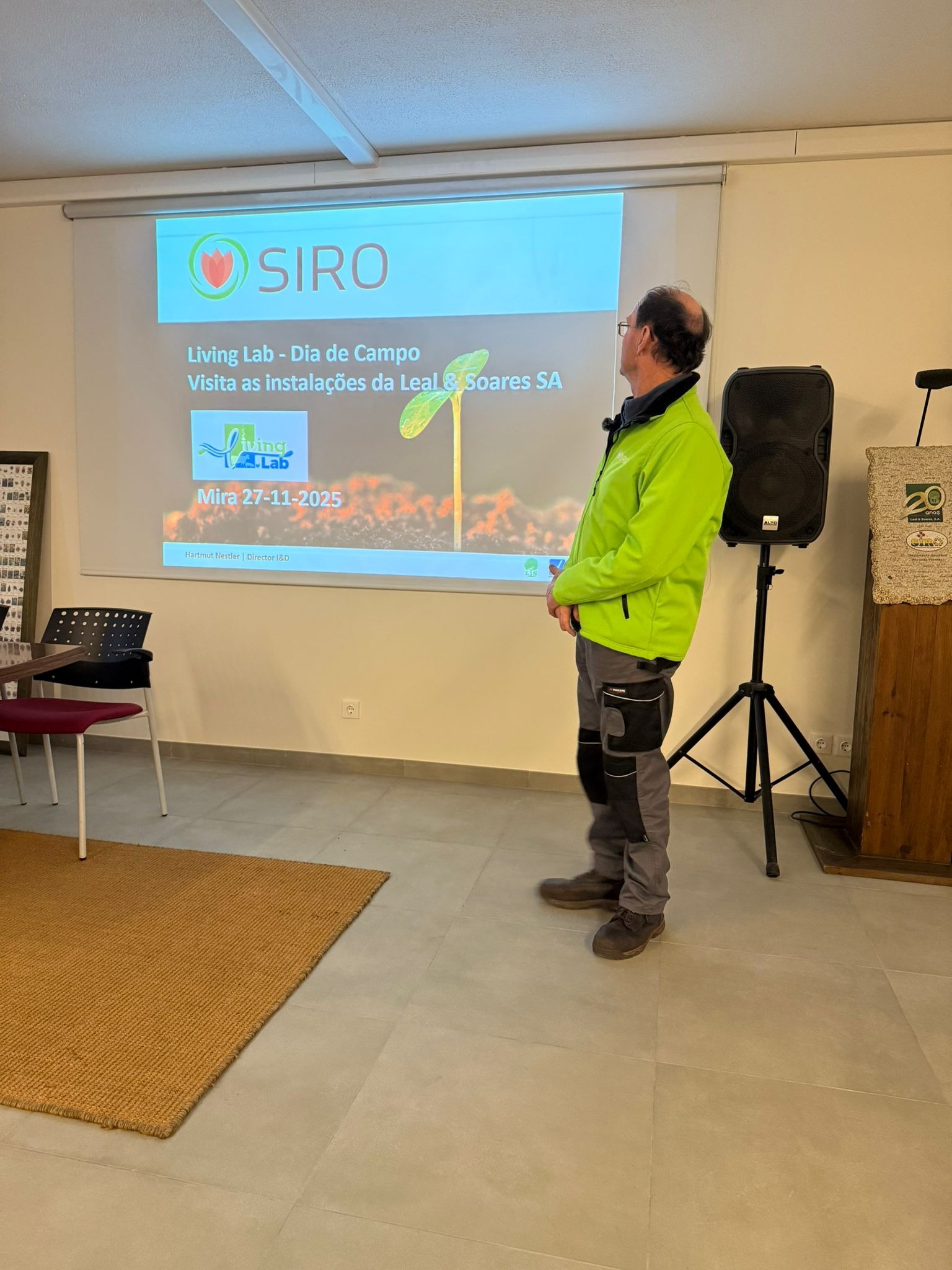 A sessão terminou com uma visita guiada às instalações da Leal & Soares / SIRO, onde os participantes puderam acompanhar, no terreno, todas as fases do processo de compostagem e transformação de resíduos orgânicos. A visita permitiu uma compreensão direta das tecnologias utilizadas e do papel fundamental que estas desempenham no aproveitamento sustentável dos recursos agropecuários.